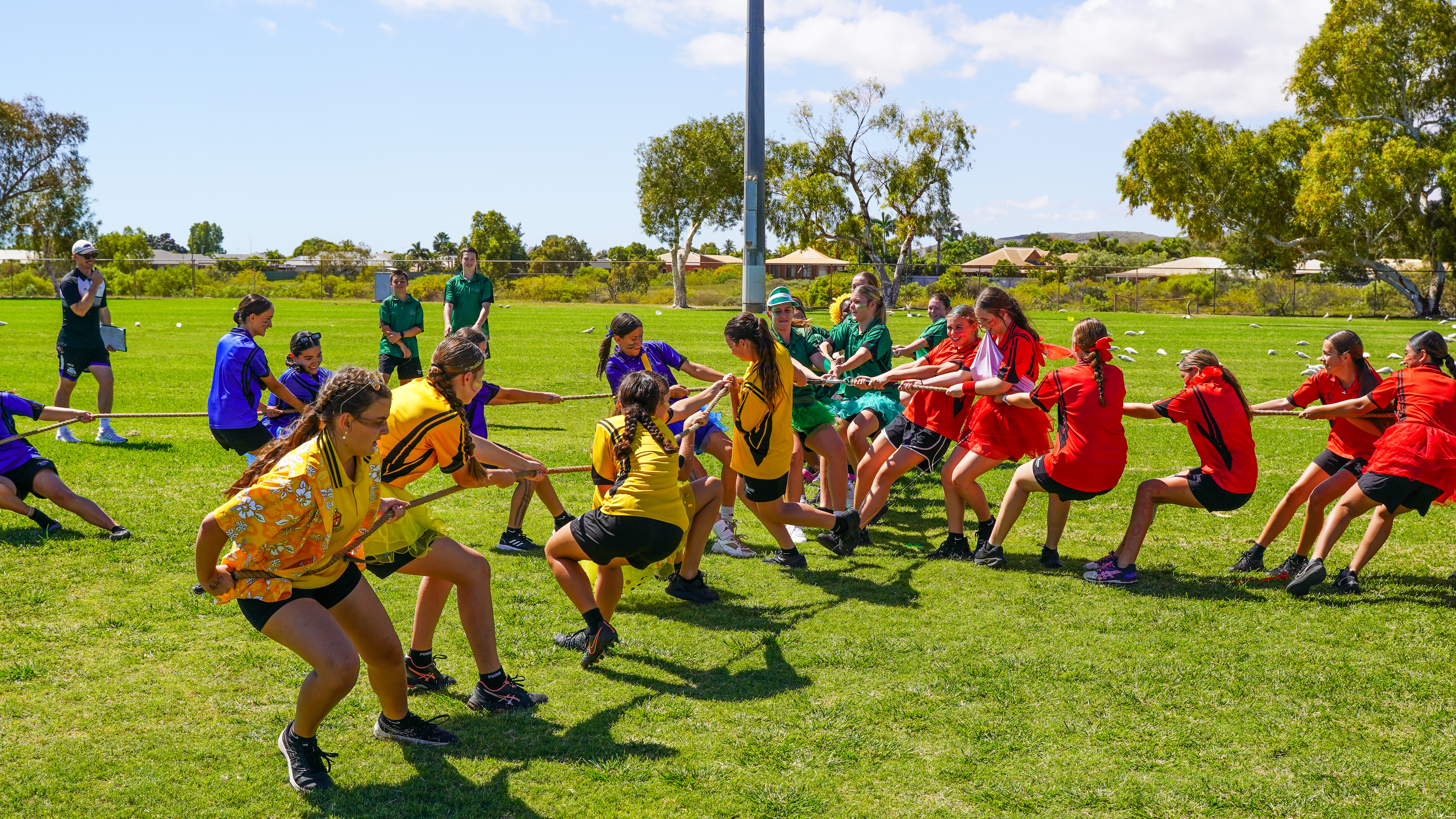 The carnival featured a wide range of track and field events, each designed to test the participants' speed, strength, endurance, and teamwork, but the most captivating aspect of the carnival was the unwavering house spirit displayed by the participants. The day began with a noisy house chant each displaying their unique colors, dances and tunes, and finished with staff, student and mascot novelty races.