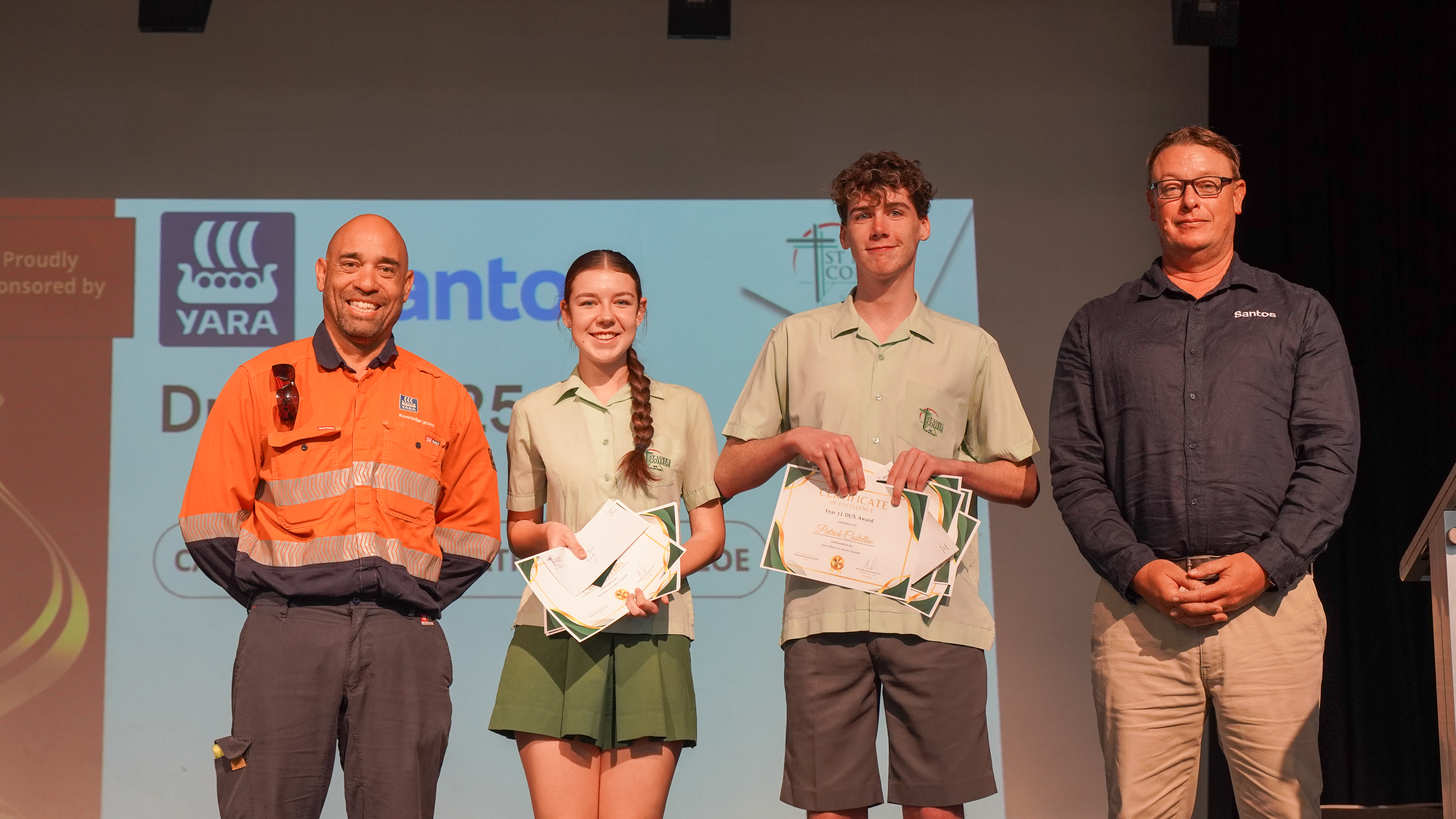 The prestigious Dux of Year 11, recognising the student with the highest academic result overall on an ATAR pathway, was jointly awarded to Patrick Costelloe and Carmen Miller. This award was proudly sponsored by Yara Pilbara and Santos Limited.