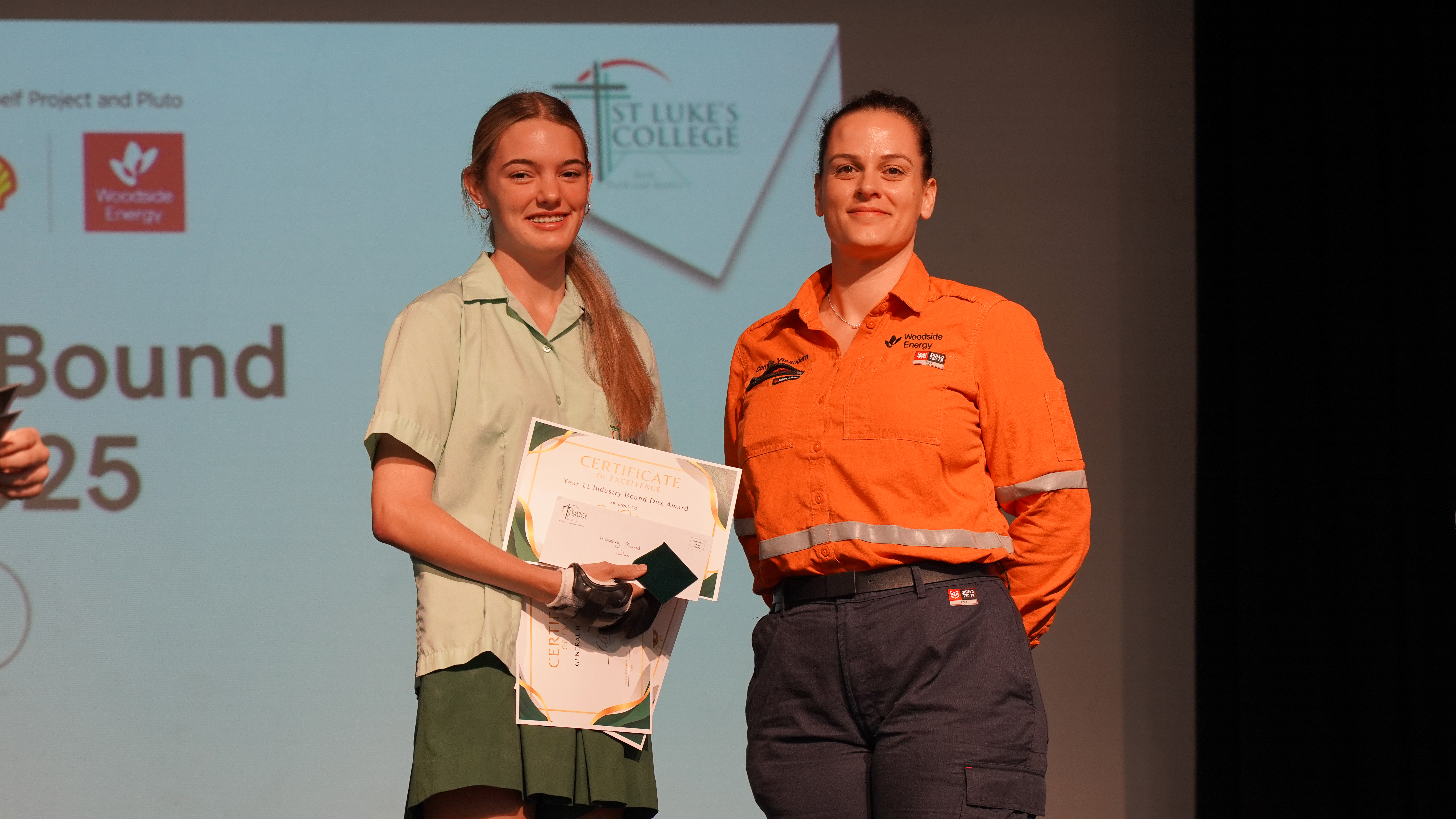 For students on a General Pathway, the Industry-Bound Dux of Year 11, awarded to the student with the highest academic result overall, went to Ava Gibson, with sponsorship from Woodside Energy representing the Karratha Roebourne Education Initiative. The Industry-Bound Proxime, recognising the second-highest academic achievement on a General Pathway, was awarded to Lilly Jauncey, proudly sponsored by Santos Limited.